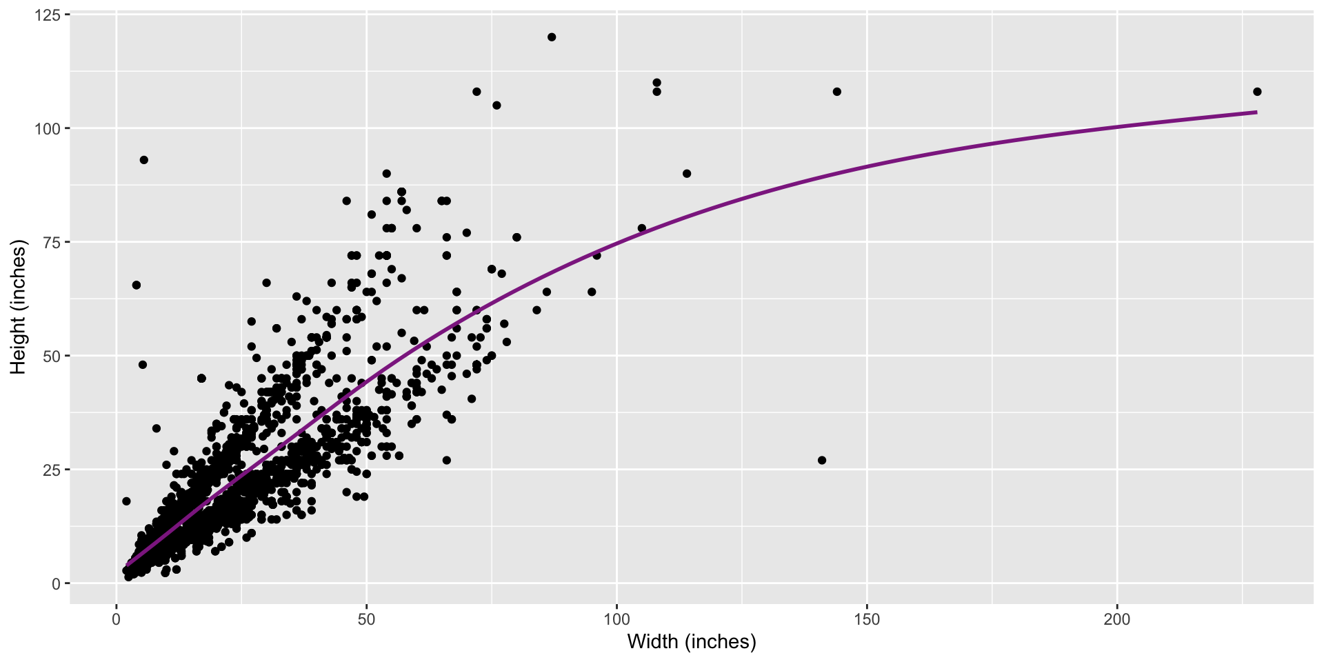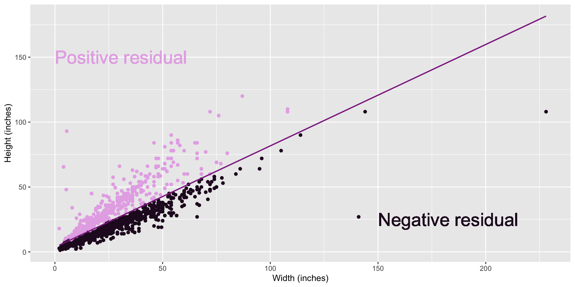 \[\widehat{height}_{i} = \beta_0 + \beta_1 \times width_{i}\]