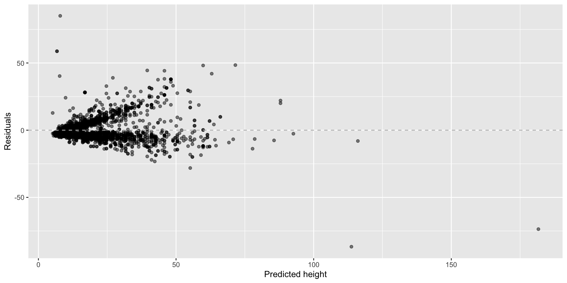 labs(x = "Predicted height", y = "Residuals")# A tibble: 3,135 × 9