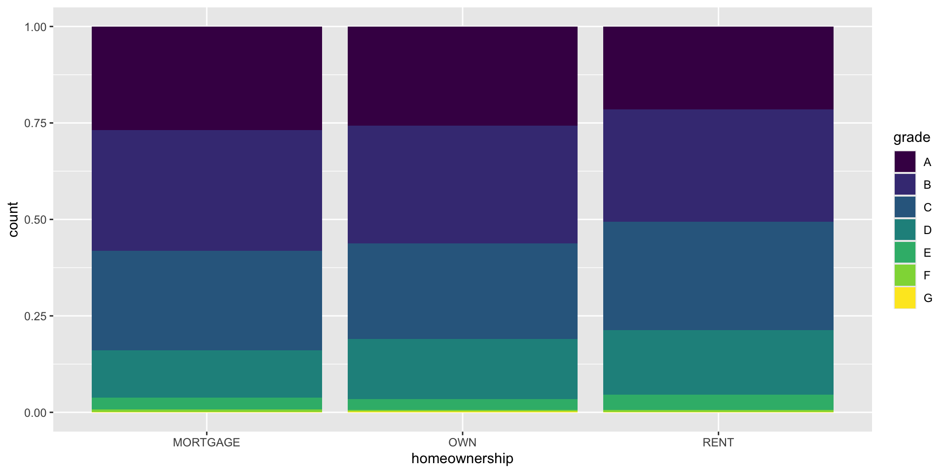 ggplot(loans, aes(x = homeownership, fill = grade)) +