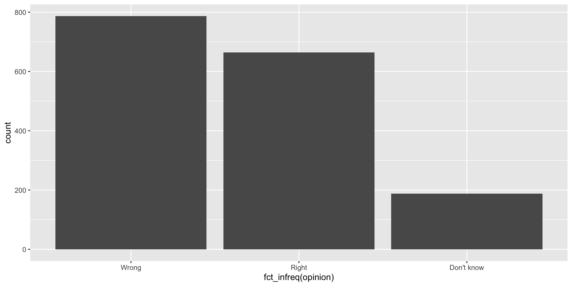 Wrap the opinion variable inside the fct_infreq function and reorder the categories by frequency