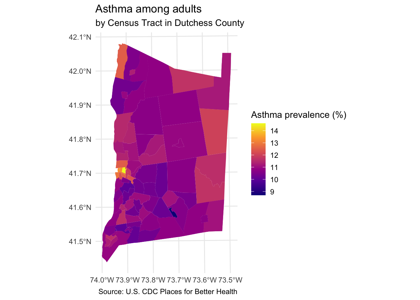Create choropleth maps of Dutchess County, NY using