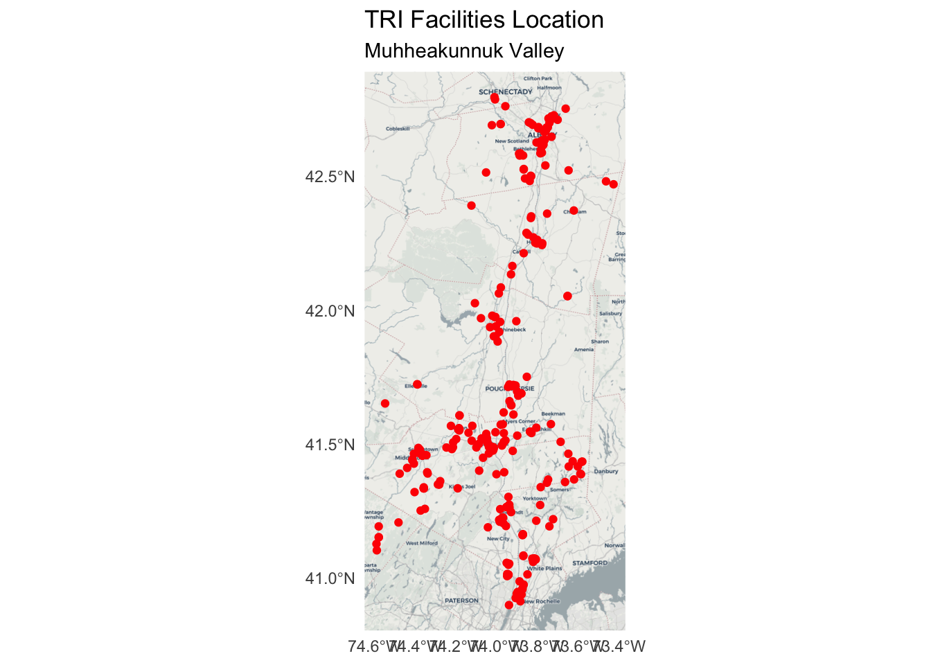 labs(title="TRI Facilities Location", subtitle = "Muhheakunnuk Valley") +