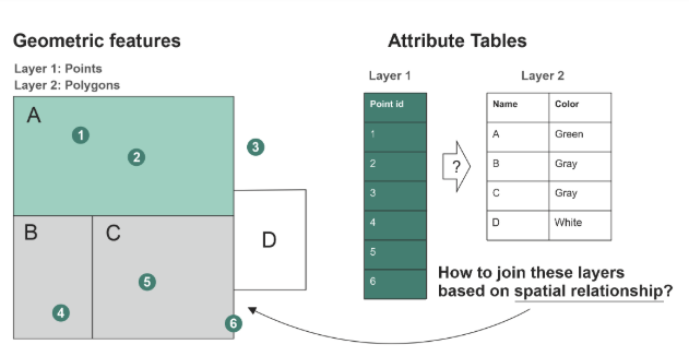 Imagine placing transparent paper maps on top of each other. Where features line up, st_join() copies the information from one map onto the other.
